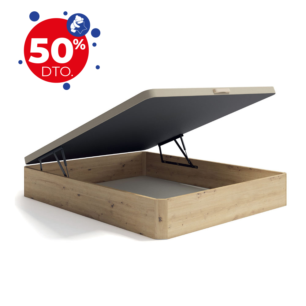 El canapé abatible de madera apertura lateral Valencia de Naturconfort es altamente resistente y apto para cualquier tipo de colchón de muelles, gel, o viscoelástica. No apto para colchones de látex.